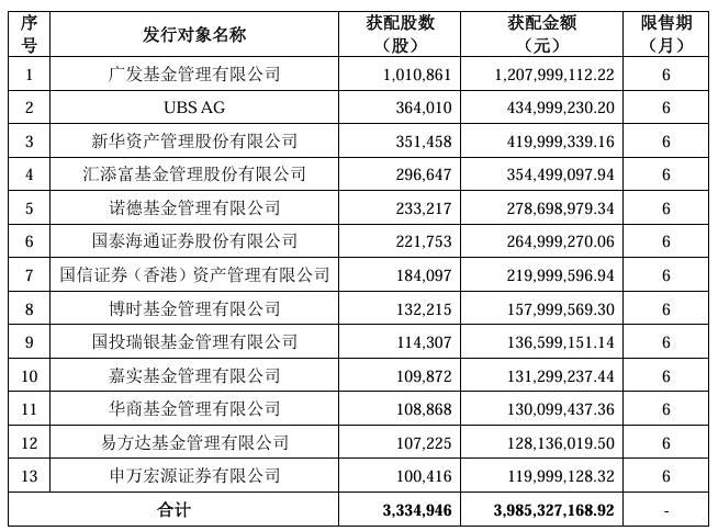 寒武纪(688256)9月30日晚间发布2025年度向特定对象发行A股股票发行情况报告书,根据投资者申购报价情况,并严格按照《认购邀请书》中确定的发行价格、发行对象及获配股份数量的程序和规则,确定本次发行价格为1195.02元/股,发行股数333.49万股,募集资金总额39.85亿元,扣除发行费用(不含税)人民币3217.13万元,募集资金净额为人民币39.53亿元。