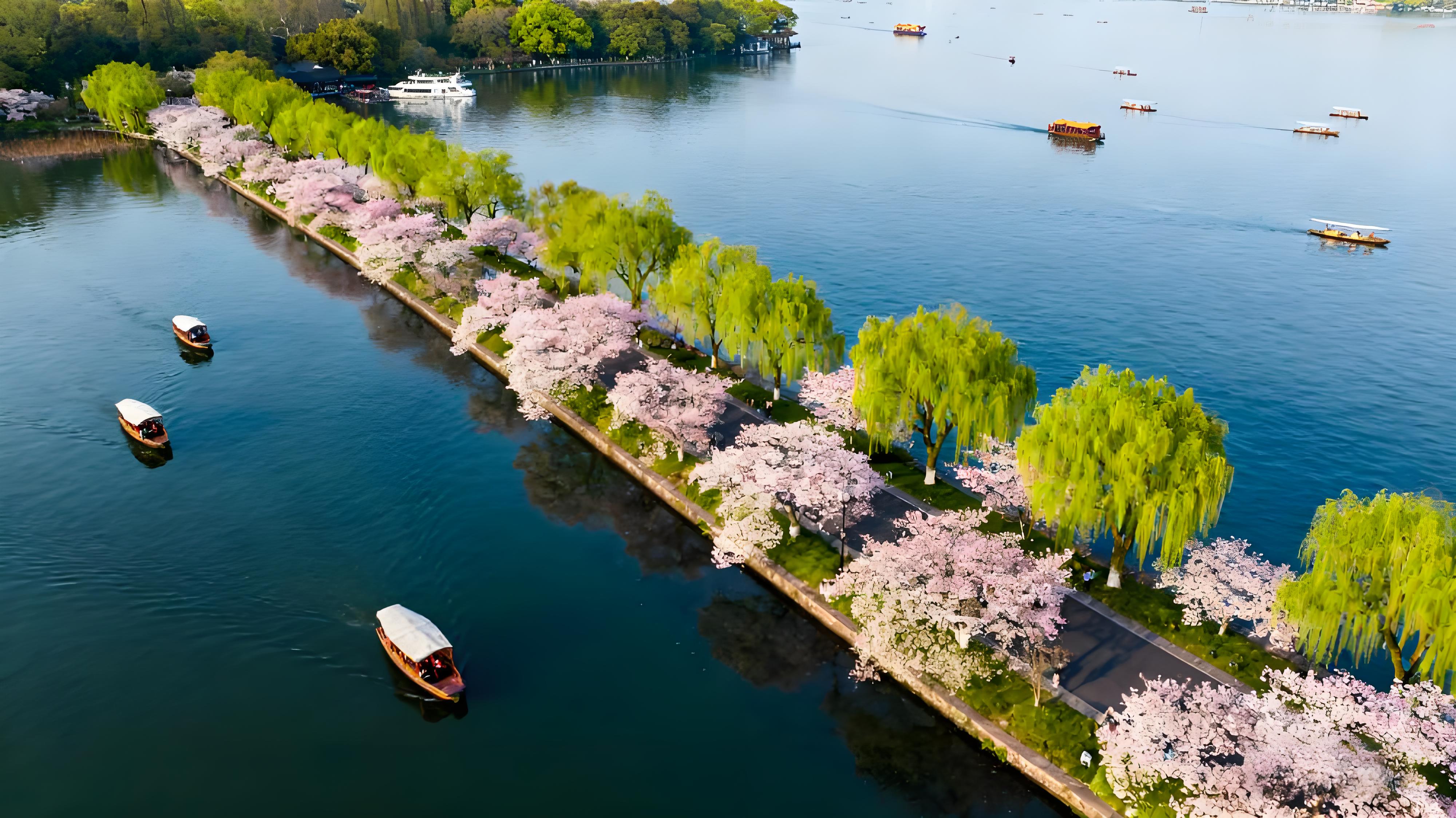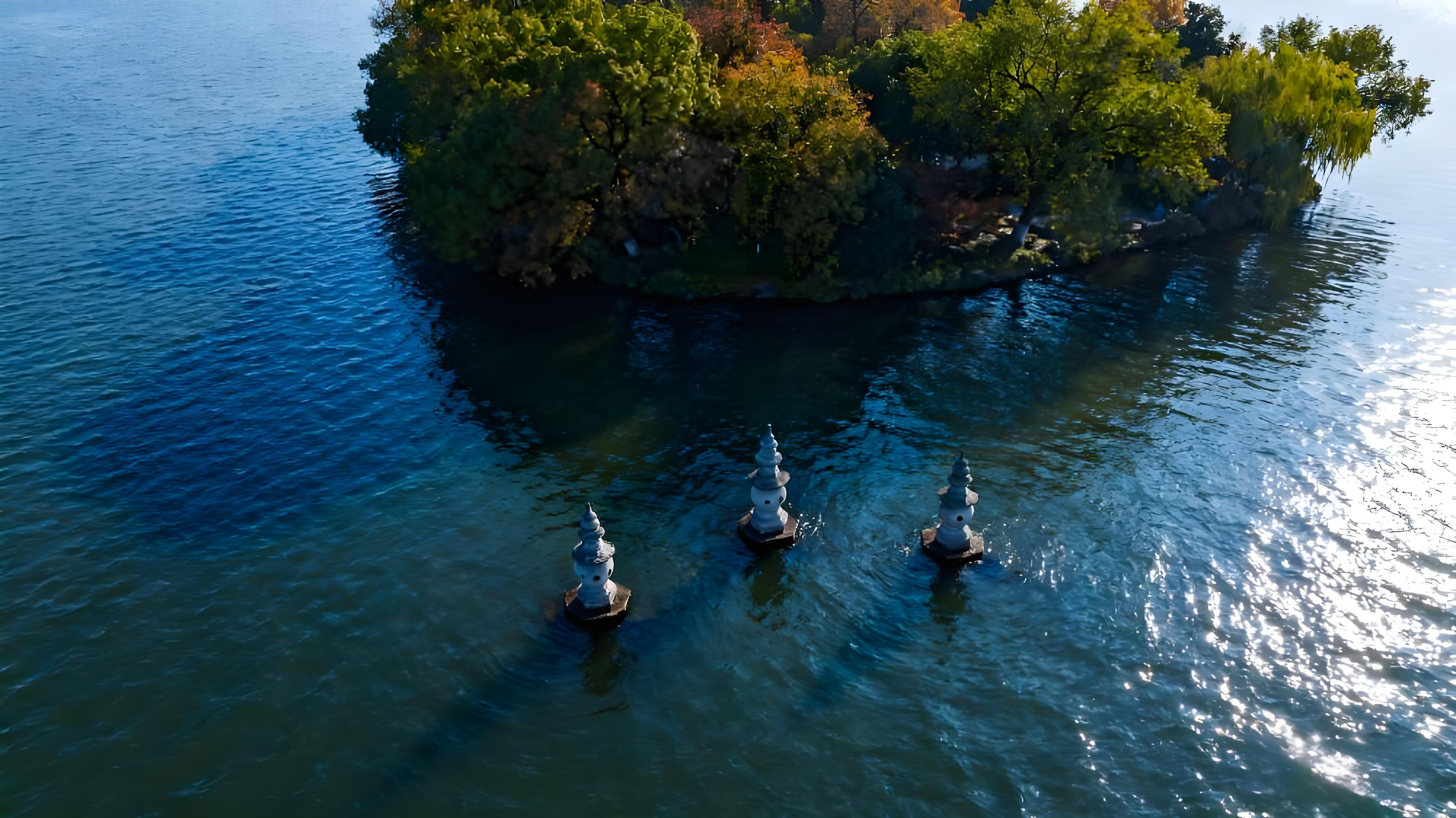 西湖的美,是 “淡妆浓抹总相宜” 的灵动变幻,是四季流转中从不重复的画卷。春日苏堤,新柳垂丝轻拂湖面,桃花初绽如霞,暖风里莺啼婉转,印证着 “乱花渐欲迷人眼” 的生机盎然。盛夏曲院风荷,接天莲叶铺展成碧色云霞,映日荷花吐露绯红,游船穿行其间,暗香沁人心脾。秋日三潭印月,皓月当空时,石塔与月影交叠,构成 “天上月一轮,湖中影成三” 的奇景,与孤山桂雨的甜香共织清梦。冬雪初霁,断桥残雪勾勒出水墨意境,雷峰塔在白雪映衬下更显古朴庄重。